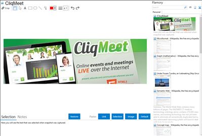 Flamory helps you capture and store screenshots from CliqMeet by pressing a single hotkey. It will be saved to a history, so you can continue doing your tasks without interruptions. Later, you can edit the screenshot: crop, resize, add labels and highlights. After that, you can paste the screenshot into any other document or e-mail message.
