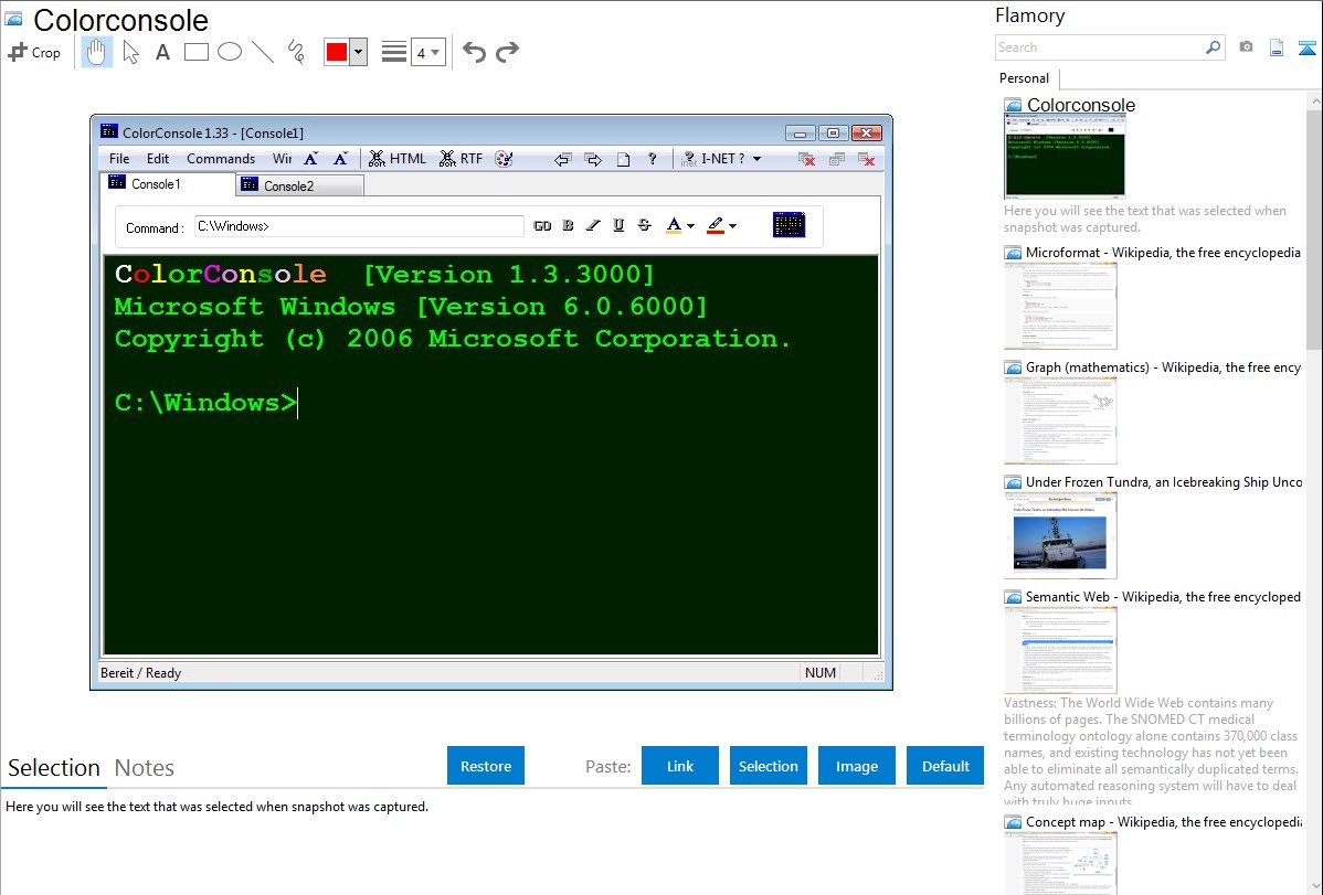 Flamory helps you capture and store screenshots from Colorconsole by pressing a single hotkey. It will be saved to a history, so you can continue doing your tasks without interruptions. Later, you can edit the screenshot: crop, resize, add labels and highlights. After that, you can paste the screenshot into any other document or e-mail message.