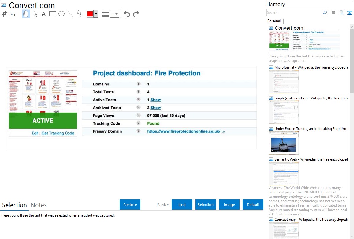 Flamory provides advanced bookmarking for Convert.com. It captures screen, selection, text on the page and other context. You can find this bookmark later using search by page content or looking through thumbnail list.