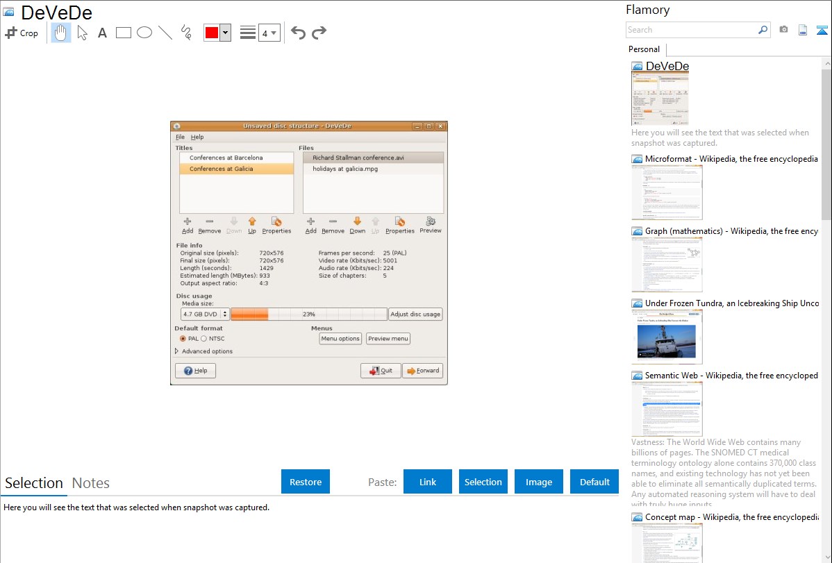 • Automatically copy selected text from DeVeDe and save it to Flamory history