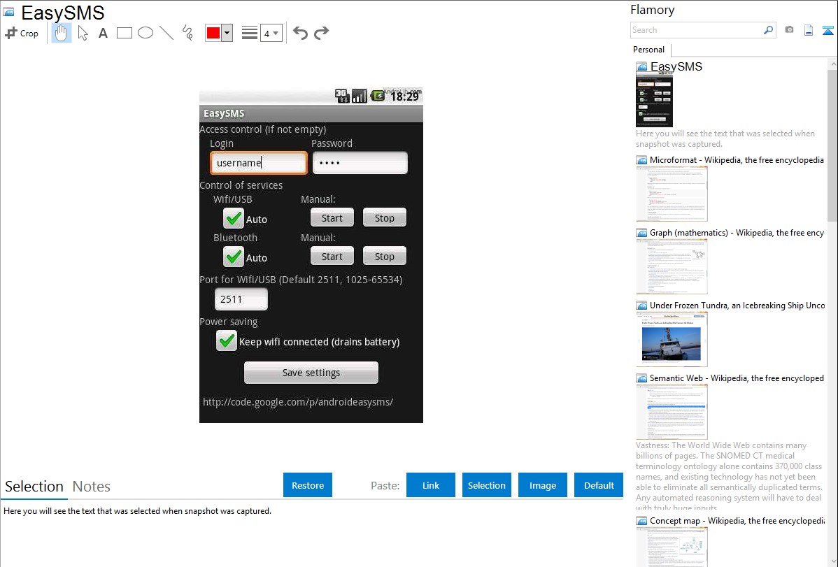 Flamory helps you capture and store screenshots from EasySMS by pressing a single hotkey. It will be saved to a history, so you can continue doing your tasks without interruptions. Later, you can edit the screenshot: crop, resize, add labels and highlights. After that, you can paste the screenshot into any other document or e-mail message.