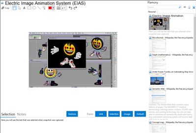 Flamory helps you capture and store screenshots from Electric Image Animation System (EIAS) by pressing a single hotkey. It will be saved to a history, so you can continue doing your tasks without interruptions. Later, you can edit the screenshot: crop, resize, add labels and highlights. After that, you can paste the screenshot into any other document or e-mail message.