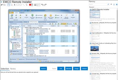 Flamory helps you capture and store screenshots from EMCO Remote Installer by pressing a single hotkey. It will be saved to a history, so you can continue doing your tasks without interruptions. Later, you can edit the screenshot: crop, resize, add labels and highlights. After that, you can paste the screenshot into any other document or e-mail message.