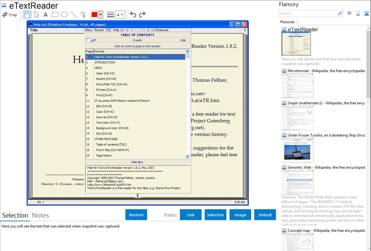 Here is how eTextReader snapshot can look like. Get Flamory and try this on your computer.