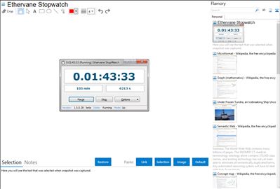 Flamory helps you capture and store screenshots from Ethervane Stopwatch by pressing a single hotkey. It will be saved to a history, so you can continue doing your tasks without interruptions. Later, you can edit the screenshot: crop, resize, add labels and highlights. After that, you can paste the screenshot into any other document or e-mail message.