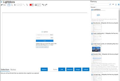 Flamory helps you capture and store screenshots from Lightdocs by pressing a single hotkey. It will be saved to a history, so you can continue doing your tasks without interruptions. Later, you can edit the screenshot: crop, resize, add labels and highlights. After that, you can paste the screenshot into any other document or e-mail message.