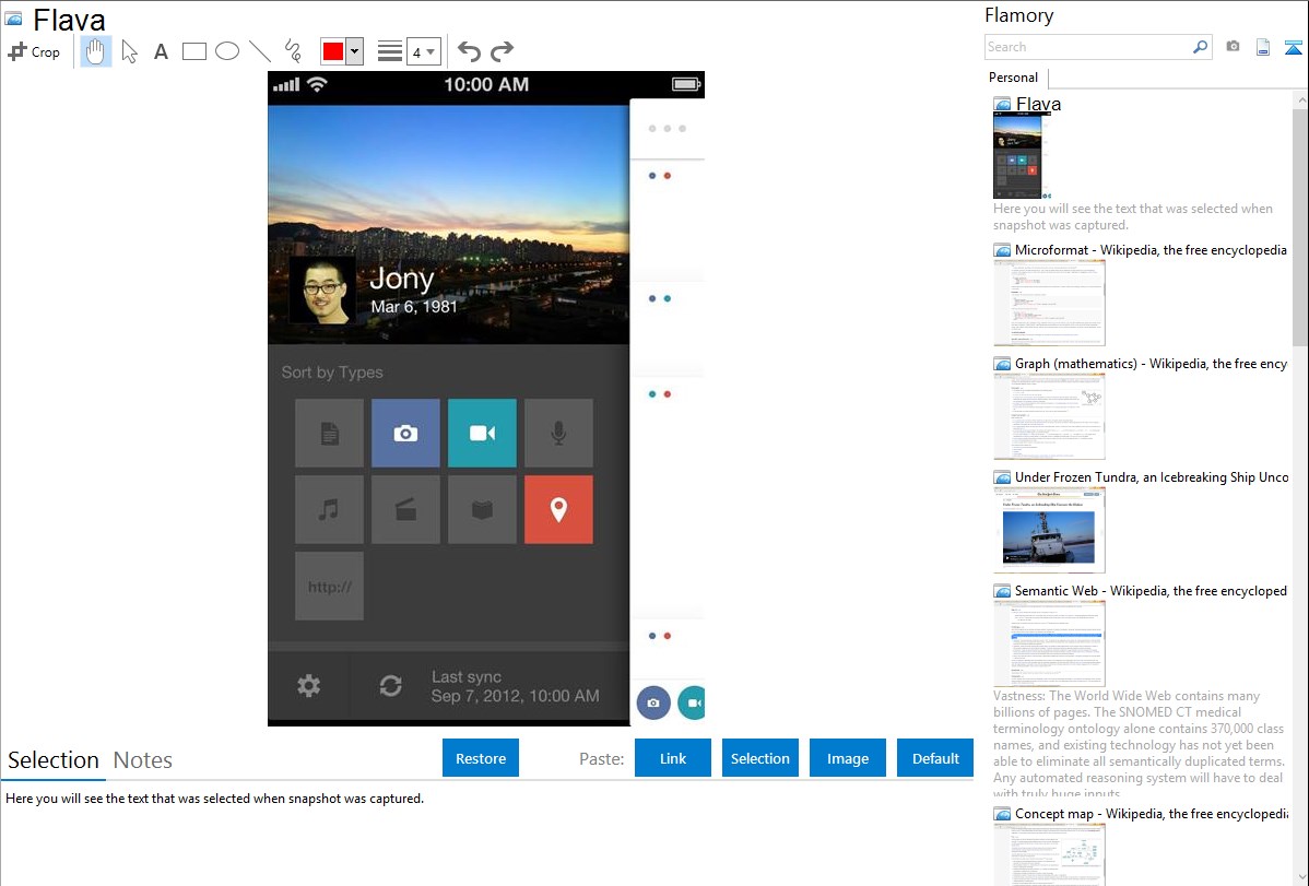 Flamory helps you capture and store screenshots from Flava by pressing a single hotkey. It will be saved to a history, so you can continue doing your tasks without interruptions. Later, you can edit the screenshot: crop, resize, add labels and highlights. After that, you can paste the screenshot into any other document or e-mail message.