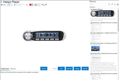 Flamory helps you capture and store screenshots from Hanso Player by pressing a single hotkey. It will be saved to a history, so you can continue doing your tasks without interruptions. Later, you can edit the screenshot: crop, resize, add labels and highlights. After that, you can paste the screenshot into any other document or e-mail message.