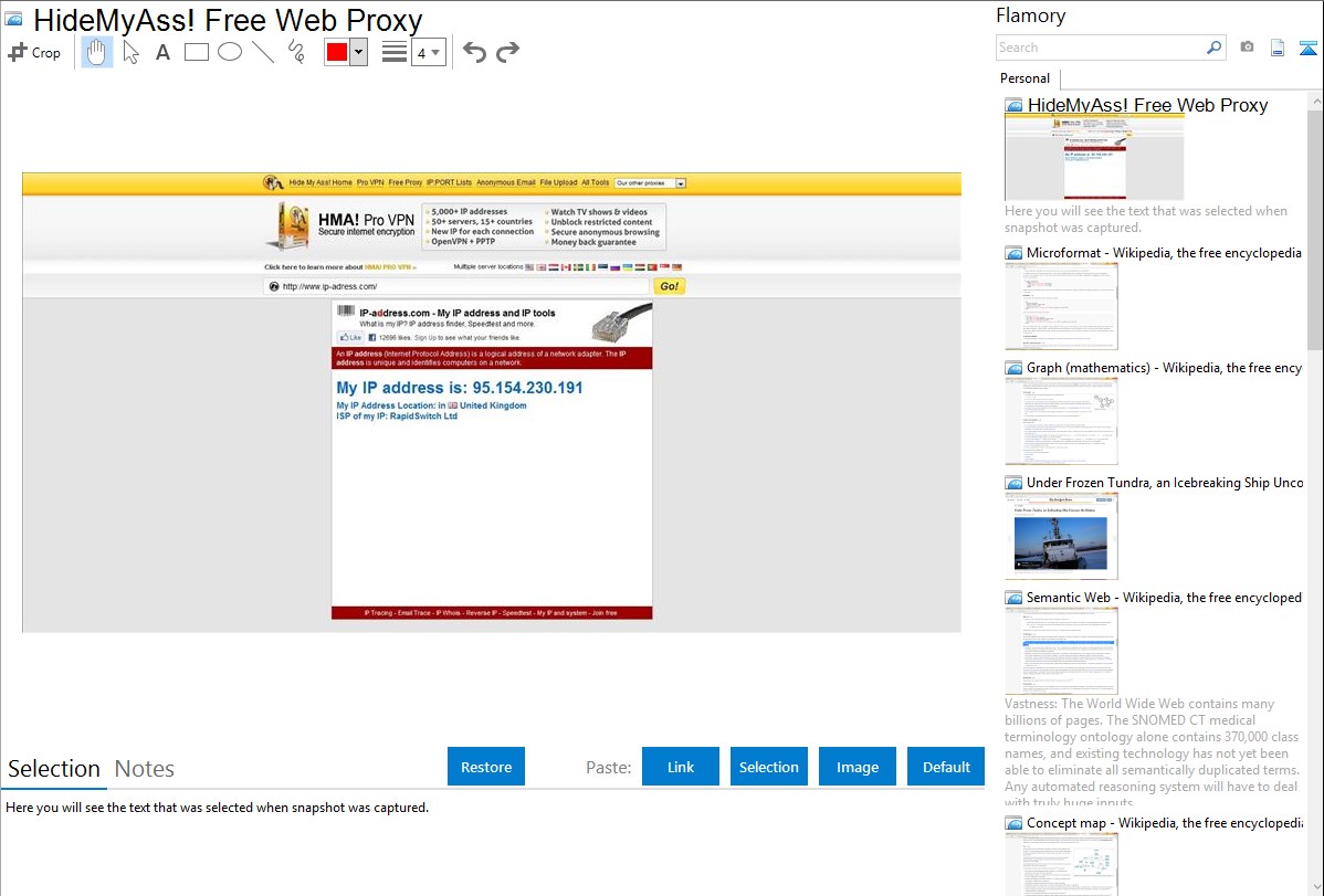 Flamory provides advanced bookmarking for HideMyAss! Free Web Proxy. It captures screen, selection, text on the page and other context. You can find this bookmark later using search by page content or looking through thumbnail list.