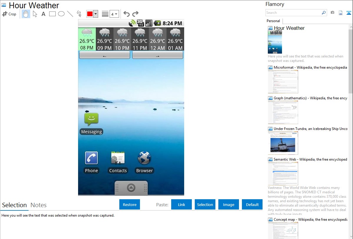 Flamory helps you capture and store screenshots from Hour Weather by pressing a single hotkey. It will be saved to a history, so you can continue doing your tasks without interruptions. Later, you can edit the screenshot: crop, resize, add labels and highlights. After that, you can paste the screenshot into any other document or e-mail message.