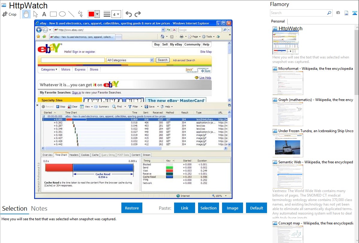Flamory helps you capture and store screenshots from HttpWatch by pressing a single hotkey. It will be saved to a history, so you can continue doing your tasks without interruptions. Later, you can edit the screenshot: crop, resize, add labels and highlights. After that, you can paste the screenshot into any other document or e-mail message.