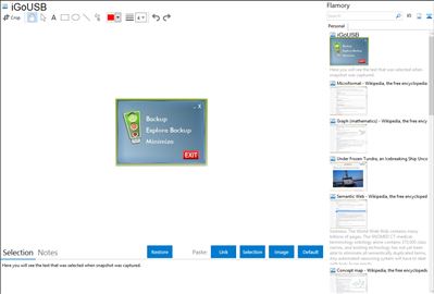 Flamory helps you capture and store screenshots from iGoUSB by pressing a single hotkey. It will be saved to a history, so you can continue doing your tasks without interruptions. Later, you can edit the screenshot: crop, resize, add labels and highlights. After that, you can paste the screenshot into any other document or e-mail message.