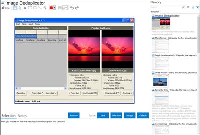 Flamory helps you capture and store screenshots from Image Deduplicator by pressing a single hotkey. It will be saved to a history, so you can continue doing your tasks without interruptions. Later, you can edit the screenshot: crop, resize, add labels and highlights. After that, you can paste the screenshot into any other document or e-mail message.