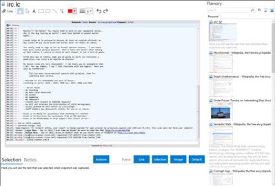 Flamory helps you capture and store screenshots from irc.lc by pressing a single hotkey. It will be saved to a history, so you can continue doing your tasks without interruptions. Later, you can edit the screenshot: crop, resize, add labels and highlights. After that, you can paste the screenshot into any other document or e-mail message.