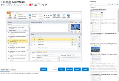 Flamory helps you capture and store screenshots from iSpring QuizMaker by pressing a single hotkey. It will be saved to a history, so you can continue doing your tasks without interruptions. Later, you can edit the screenshot: crop, resize, add labels and highlights. After that, you can paste the screenshot into any other document or e-mail message.
