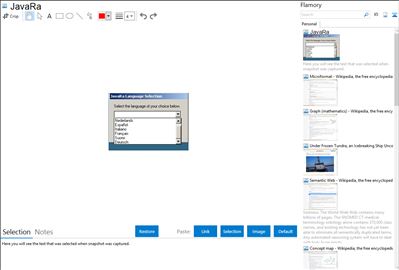 Flamory helps you capture and store screenshots from JavaRa by pressing a single hotkey. It will be saved to a history, so you can continue doing your tasks without interruptions. Later, you can edit the screenshot: crop, resize, add labels and highlights. After that, you can paste the screenshot into any other document or e-mail message.