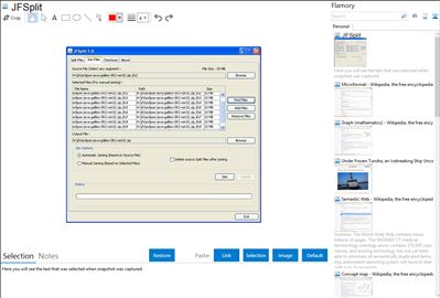 Flamory helps you capture and store screenshots from JFSplit by pressing a single hotkey. It will be saved to a history, so you can continue doing your tasks without interruptions. Later, you can edit the screenshot: crop, resize, add labels and highlights. After that, you can paste the screenshot into any other document or e-mail message.