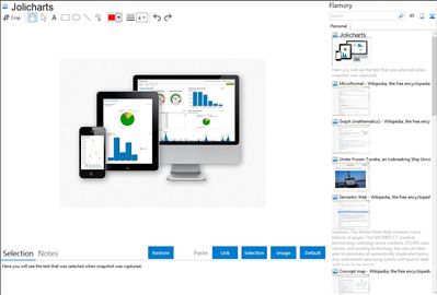 Flamory helps you capture and store screenshots from Jolicharts by pressing a single hotkey. It will be saved to a history, so you can continue doing your tasks without interruptions. Later, you can edit the screenshot: crop, resize, add labels and highlights. After that, you can paste the screenshot into any other document or e-mail message.