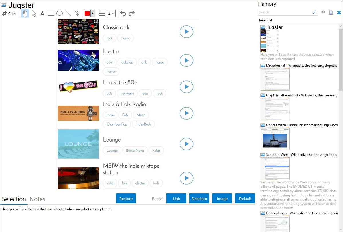 Flamory helps you capture and store screenshots from Juqster by pressing a single hotkey. It will be saved to a history, so you can continue doing your tasks without interruptions. Later, you can edit the screenshot: crop, resize, add labels and highlights. After that, you can paste the screenshot into any other document or e-mail message.