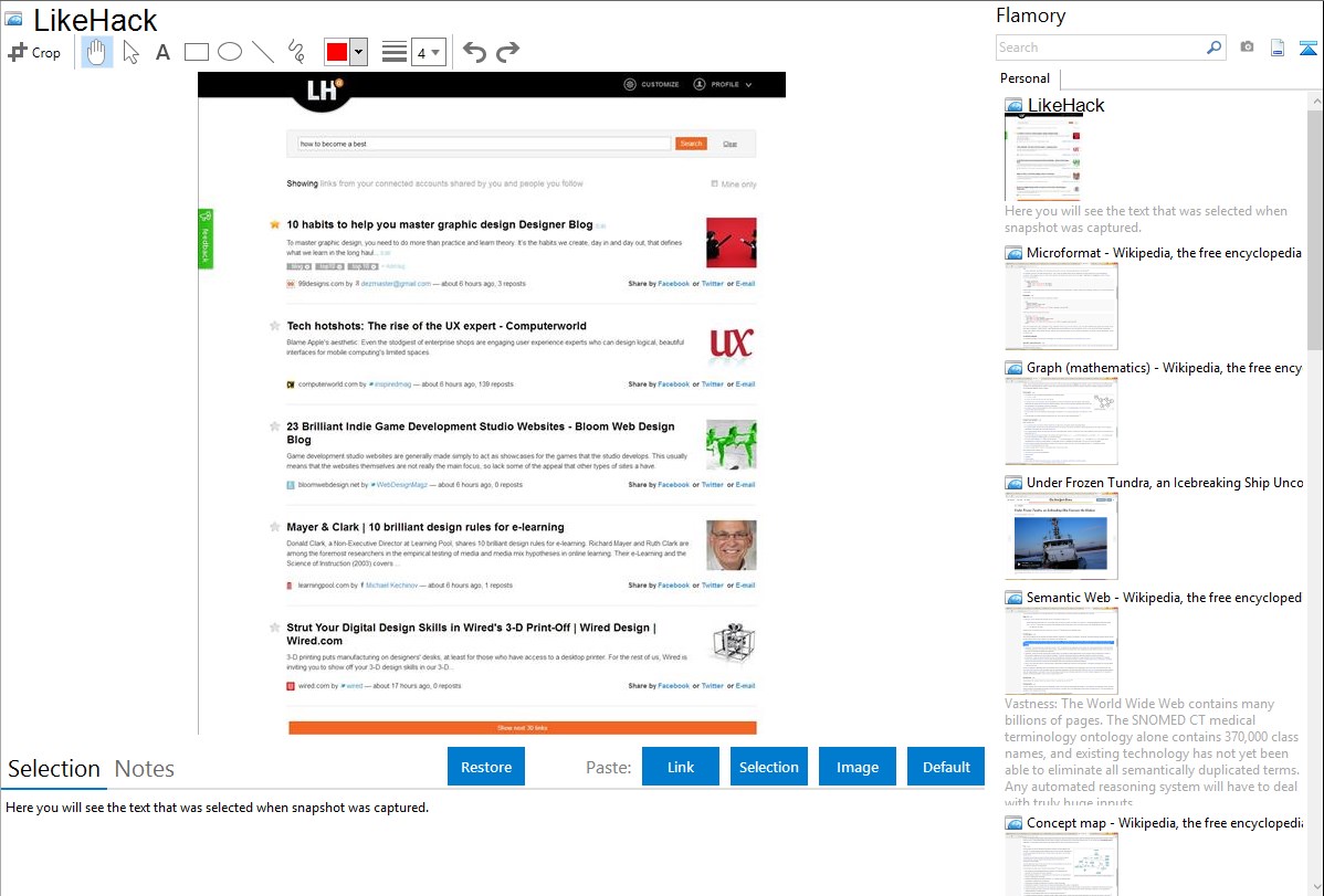 Flamory helps you capture and store screenshots from LikeHack by pressing a single hotkey. It will be saved to a history, so you can continue doing your tasks without interruptions. Later, you can edit the screenshot: crop, resize, add labels and highlights. After that, you can paste the screenshot into any other document or e-mail message.