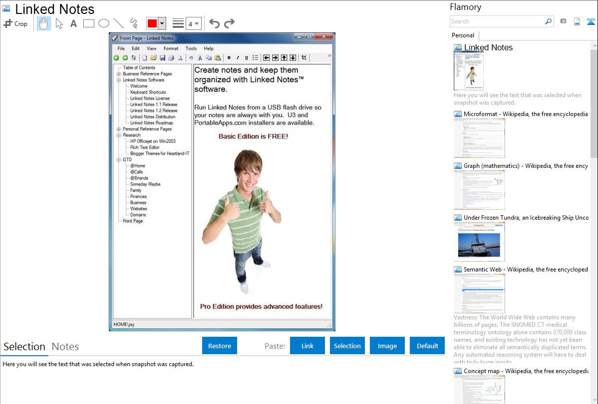 Flamory helps you capture and store screenshots from Linked Notes by pressing a single hotkey. It will be saved to a history, so you can continue doing your tasks without interruptions. Later, you can edit the screenshot: crop, resize, add labels and highlights. After that, you can paste the screenshot into any other document or e-mail message.