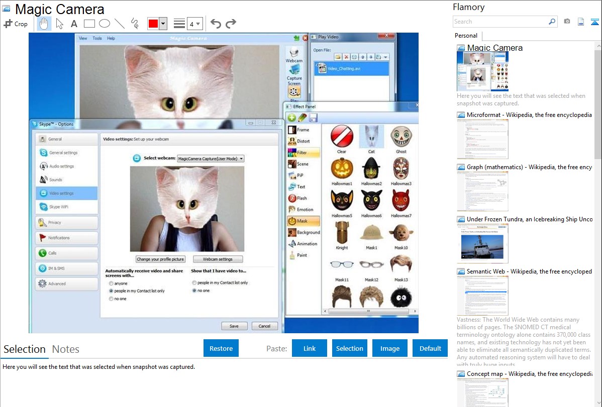 Flamory helps you capture and store screenshots from Magic Camera by pressing a single hotkey. It will be saved to a history, so you can continue doing your tasks without interruptions. Later, you can edit the screenshot: crop, resize, add labels and highlights. After that, you can paste the screenshot into any other document or e-mail message.