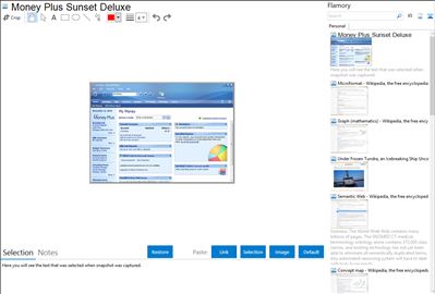 Flamory helps you capture and store screenshots from Money Plus Sunset Deluxe by pressing a single hotkey. It will be saved to a history, so you can continue doing your tasks without interruptions. Later, you can edit the screenshot: crop, resize, add labels and highlights. After that, you can paste the screenshot into any other document or e-mail message.