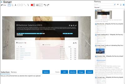 Flamory helps you capture and store screenshots from Sonarr by pressing a single hotkey. It will be saved to a history, so you can continue doing your tasks without interruptions. Later, you can edit the screenshot: crop, resize, add labels and highlights. After that, you can paste the screenshot into any other document or e-mail message.