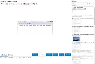 Flamory helps you capture and store screenshots from ochDownloader by pressing a single hotkey. It will be saved to a history, so you can continue doing your tasks without interruptions. Later, you can edit the screenshot: crop, resize, add labels and highlights. After that, you can paste the screenshot into any other document or e-mail message.