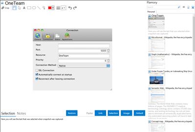 Flamory helps you capture and store screenshots from OneTeam by pressing a single hotkey. It will be saved to a history, so you can continue doing your tasks without interruptions. Later, you can edit the screenshot: crop, resize, add labels and highlights. After that, you can paste the screenshot into any other document or e-mail message.