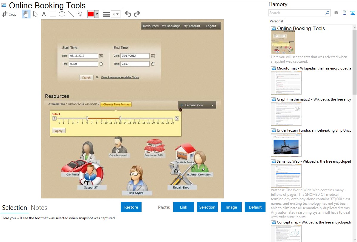 Flamory provides advanced bookmarking for Online Booking Tools. It captures screen, selection, text on the page and other context. You can find this bookmark later using search by page content or looking through thumbnail list.