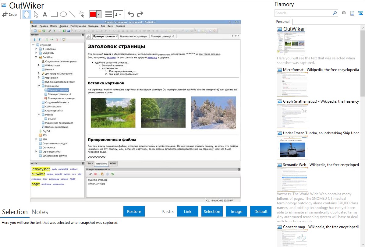 Here is how OutWiker snapshot can look like. Get Flamory and try this on your computer.