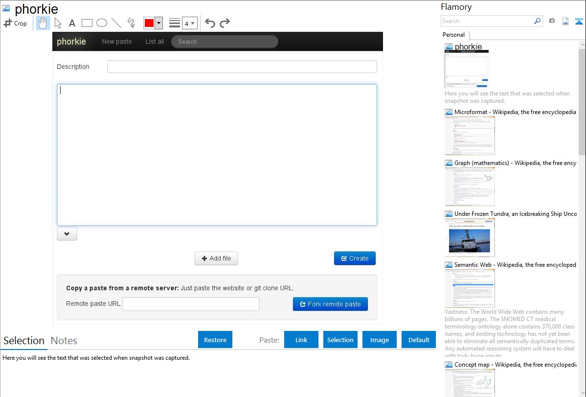 Flamory helps you capture and store screenshots from phorkie by pressing a single hotkey. It will be saved to a history, so you can continue doing your tasks without interruptions. Later, you can edit the screenshot: crop, resize, add labels and highlights. After that, you can paste the screenshot into any other document or e-mail message.