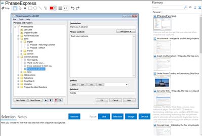 Flamory helps you capture and store screenshots from PhraseExpress by pressing a single hotkey. It will be saved to a history, so you can continue doing your tasks without interruptions. Later, you can edit the screenshot: crop, resize, add labels and highlights. After that, you can paste the screenshot into any other document or e-mail message.