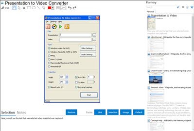 Flamory helps you capture and store screenshots from Presentation to Video Converter by pressing a single hotkey. It will be saved to a history, so you can continue doing your tasks without interruptions. Later, you can edit the screenshot: crop, resize, add labels and highlights. After that, you can paste the screenshot into any other document or e-mail message.