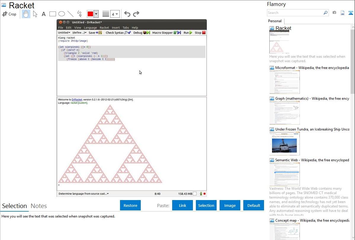• Automatically copy selected text from Racket and save it to Flamory history