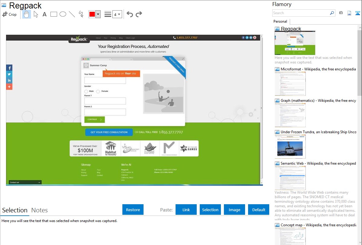 Flamory provides advanced bookmarking for Regpack. It captures screen, selection, text on the page and other context. You can find this bookmark later using search by page content or looking through thumbnail list.