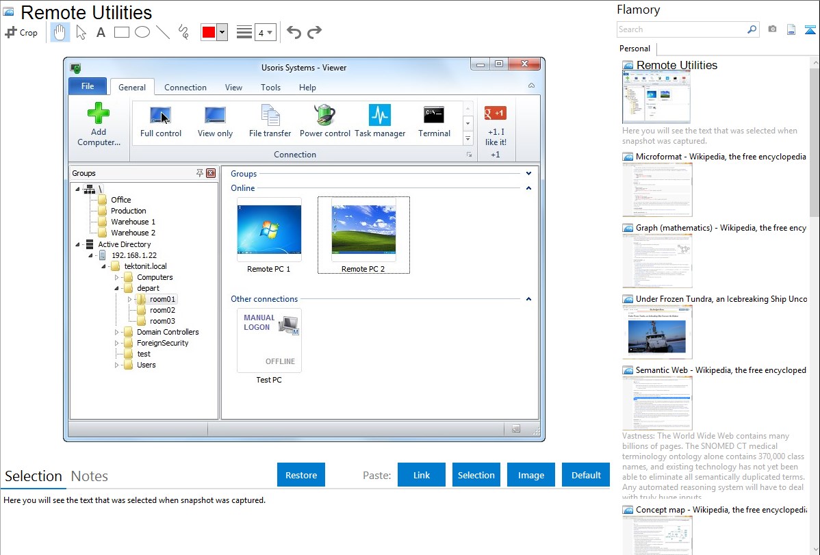 Here is how Remote Utilities snapshot can look like. Get Flamory and try this on your computer.
