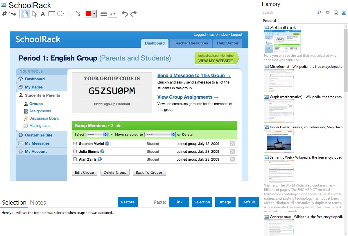 Flamory helps you capture and store screenshots from SchoolRack by pressing a single hotkey. It will be saved to a history, so you can continue doing your tasks without interruptions. Later, you can edit the screenshot: crop, resize, add labels and highlights. After that, you can paste the screenshot into any other document or e-mail message.