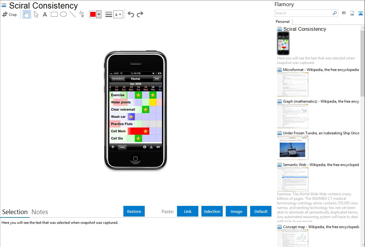 Flamory helps you capture and store screenshots from Sciral Consistency by pressing a single hotkey. It will be saved to a history, so you can continue doing your tasks without interruptions. Later, you can edit the screenshot: crop, resize, add labels and highlights. After that, you can paste the screenshot into any other document or e-mail message.