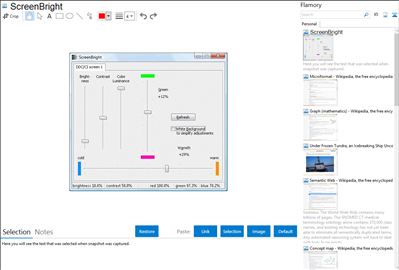 Flamory helps you capture and store screenshots from ScreenBright by pressing a single hotkey. It will be saved to a history, so you can continue doing your tasks without interruptions. Later, you can edit the screenshot: crop, resize, add labels and highlights. After that, you can paste the screenshot into any other document or e-mail message.