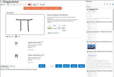 Shapecatcher is a new website, that helps you to find specific Unicode characters, just by sketching their shape. Currently about 10000 of the most important Unicode characters are compared to your sketch and are analysed for similarities. It can find the most similar character shapes for your drawing.