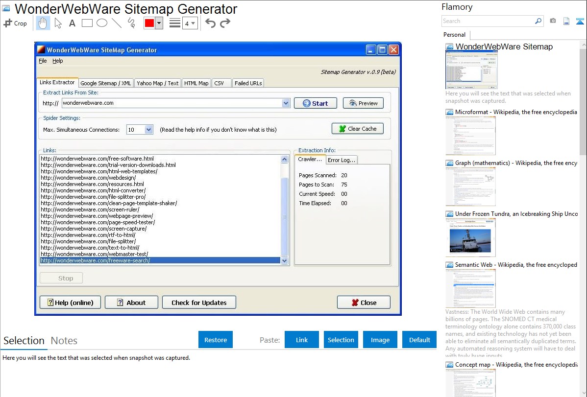 WonderWebWare Sitemap Generator - Flamory bookmarks and screenshots