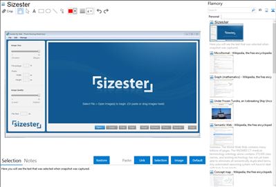 Flamory helps you capture and store screenshots from Sizester by pressing a single hotkey. It will be saved to a history, so you can continue doing your tasks without interruptions. Later, you can edit the screenshot: crop, resize, add labels and highlights. After that, you can paste the screenshot into any other document or e-mail message.