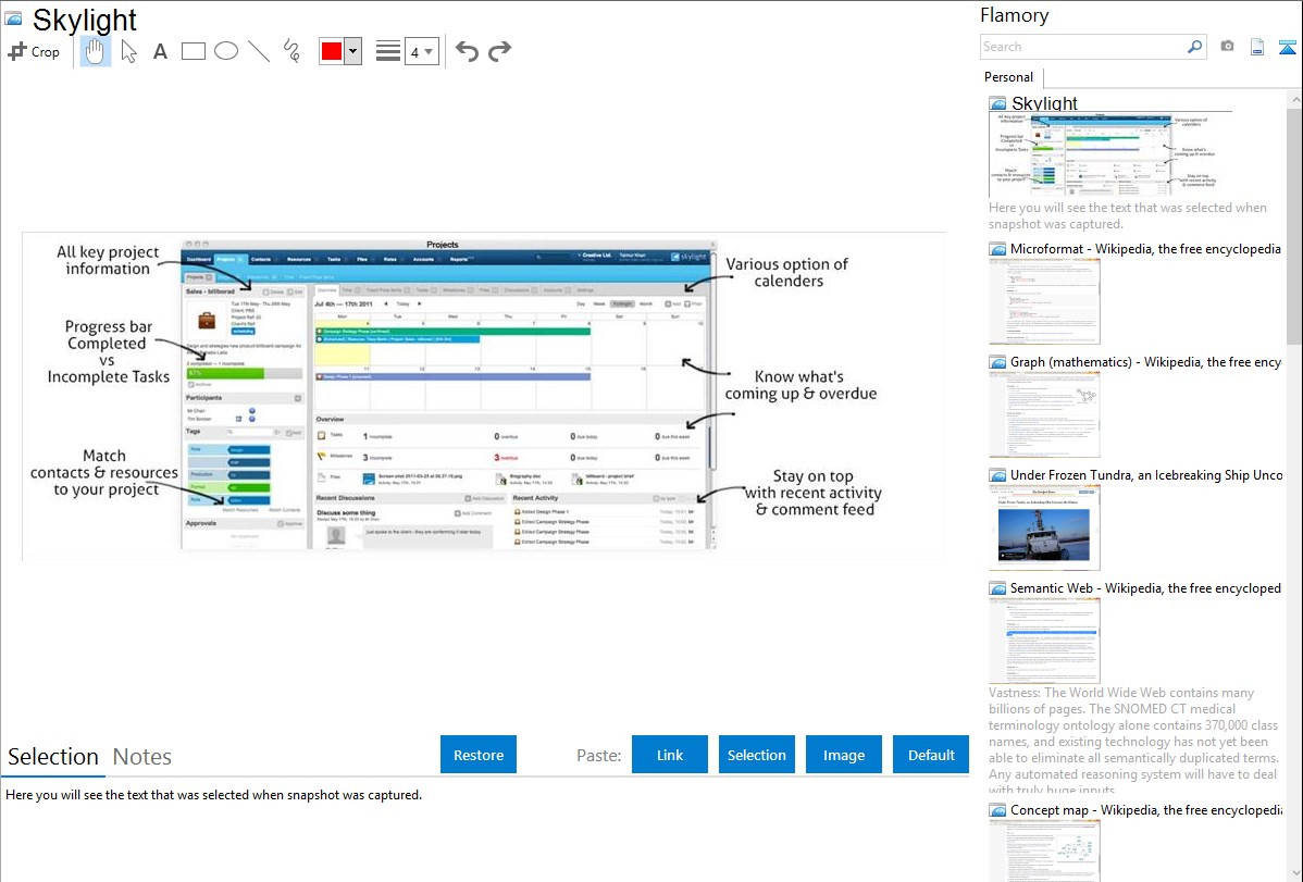 Flamory helps you capture and store screenshots from Skylight by pressing a single hotkey. It will be saved to a history, so you can continue doing your tasks without interruptions. Later, you can edit the screenshot: crop, resize, add labels and highlights. After that, you can paste the screenshot into any other document or e-mail message.