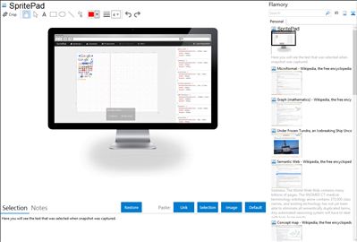 Flamory helps you capture and store screenshots from SpritePad by pressing a single hotkey. It will be saved to a history, so you can continue doing your tasks without interruptions. Later, you can edit the screenshot: crop, resize, add labels and highlights. After that, you can paste the screenshot into any other document or e-mail message.