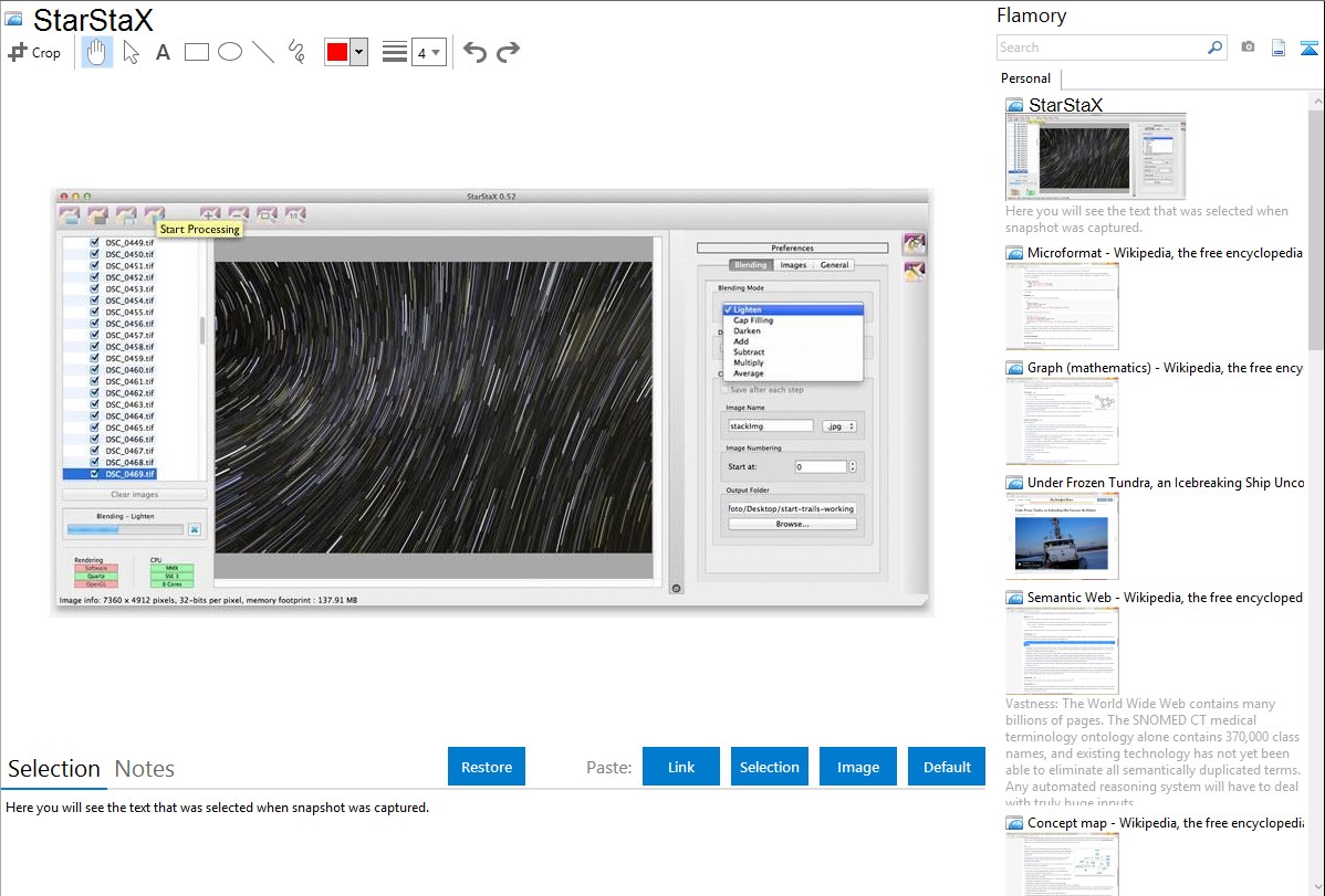 Here is how StarStaX snapshot can look like. Get Flamory and try this on your computer.