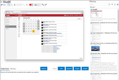 Flamory helps you capture and store screenshots from Studifi by pressing a single hotkey. It will be saved to a history, so you can continue doing your tasks without interruptions. Later, you can edit the screenshot: crop, resize, add labels and highlights. After that, you can paste the screenshot into any other document or e-mail message.