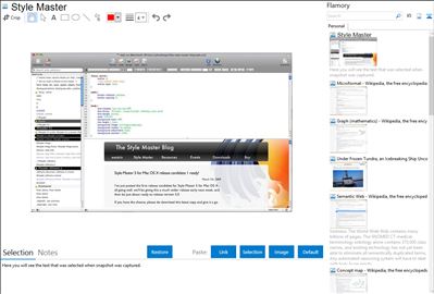 Flamory helps you capture and store screenshots from Style Master by pressing a single hotkey. It will be saved to a history, so you can continue doing your tasks without interruptions. Later, you can edit the screenshot: crop, resize, add labels and highlights. After that, you can paste the screenshot into any other document or e-mail message.