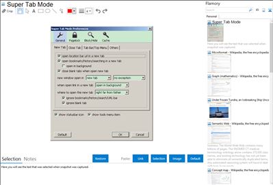 Super Tab Mode was a firefox enhancement tool which mainly focused on tab browsing capabilities. It can also block web content, hide firefox window and move firefox hard disk cache position.